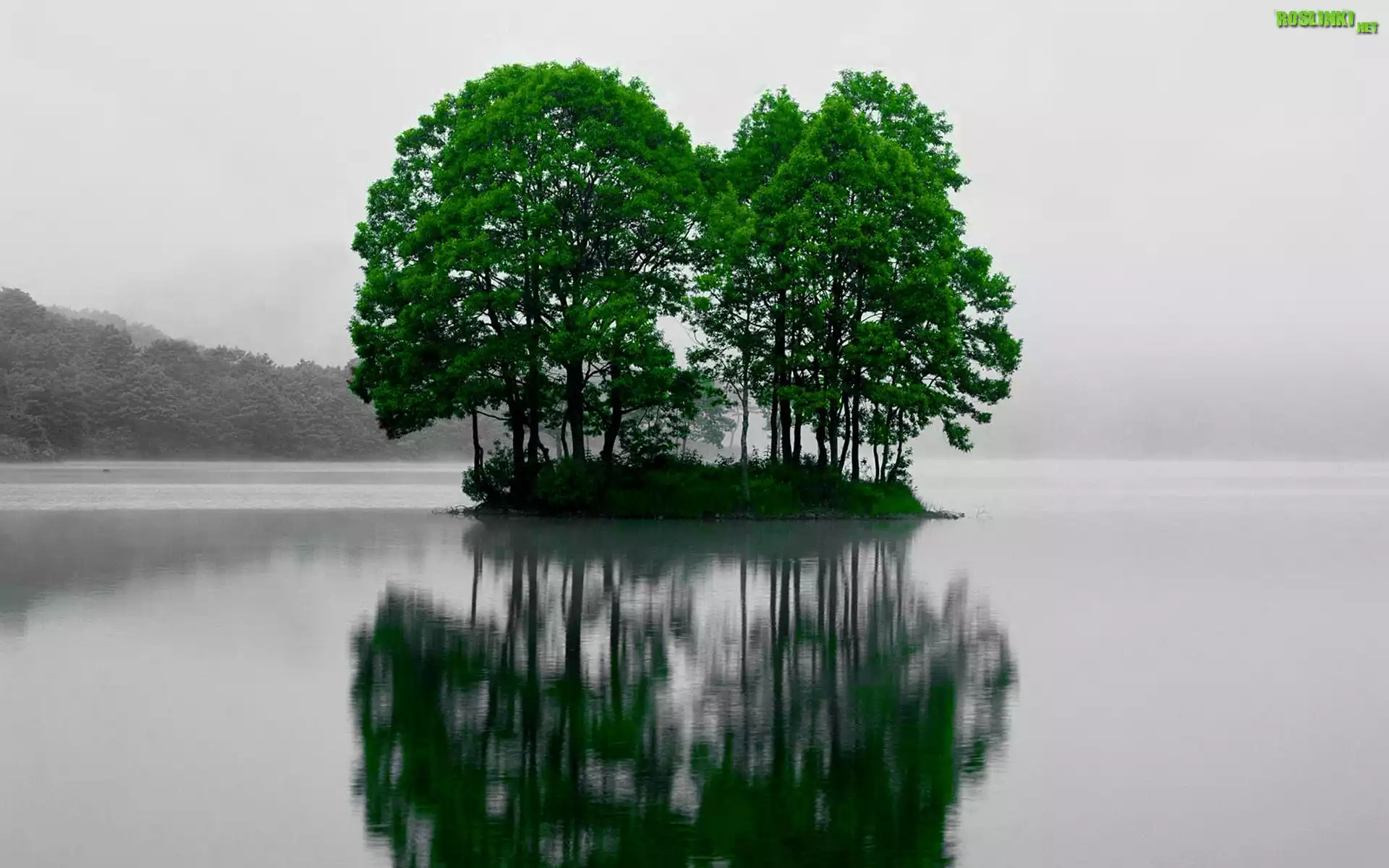 Rośliny: Jezioro, Wysepka, Drzewa, Sohara, Japonia