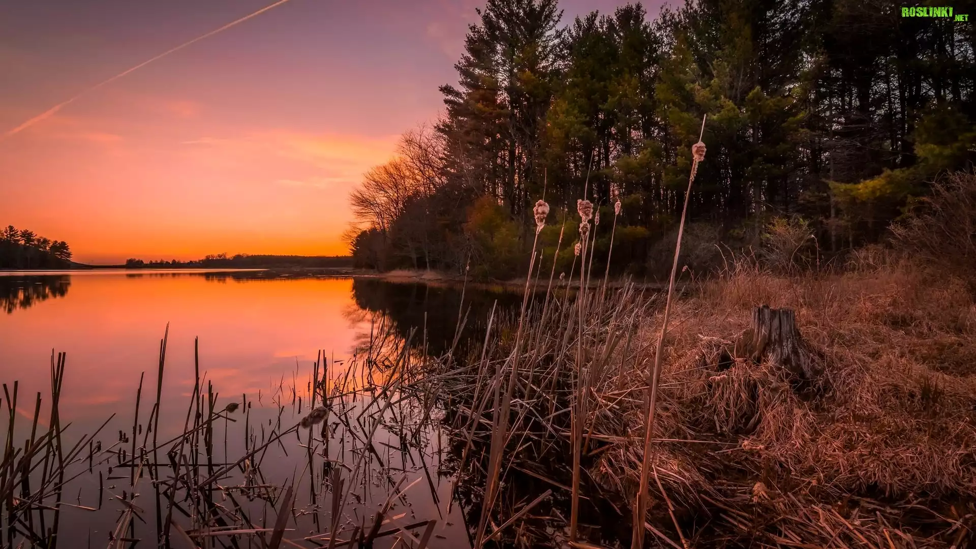 Rośliny: Jezioro, Czerwone, Niebo, Drzewa, Suche, Trawy