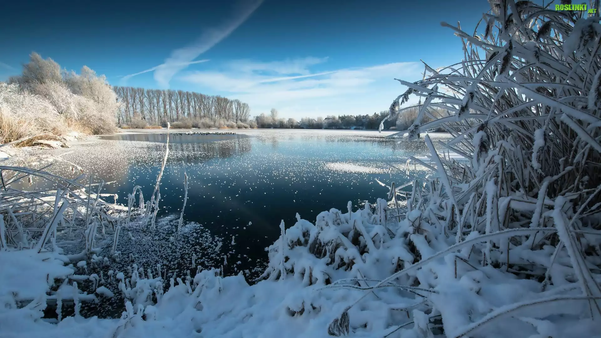 Rośliny: Jezioro, Drzewa, Trawy, Zima