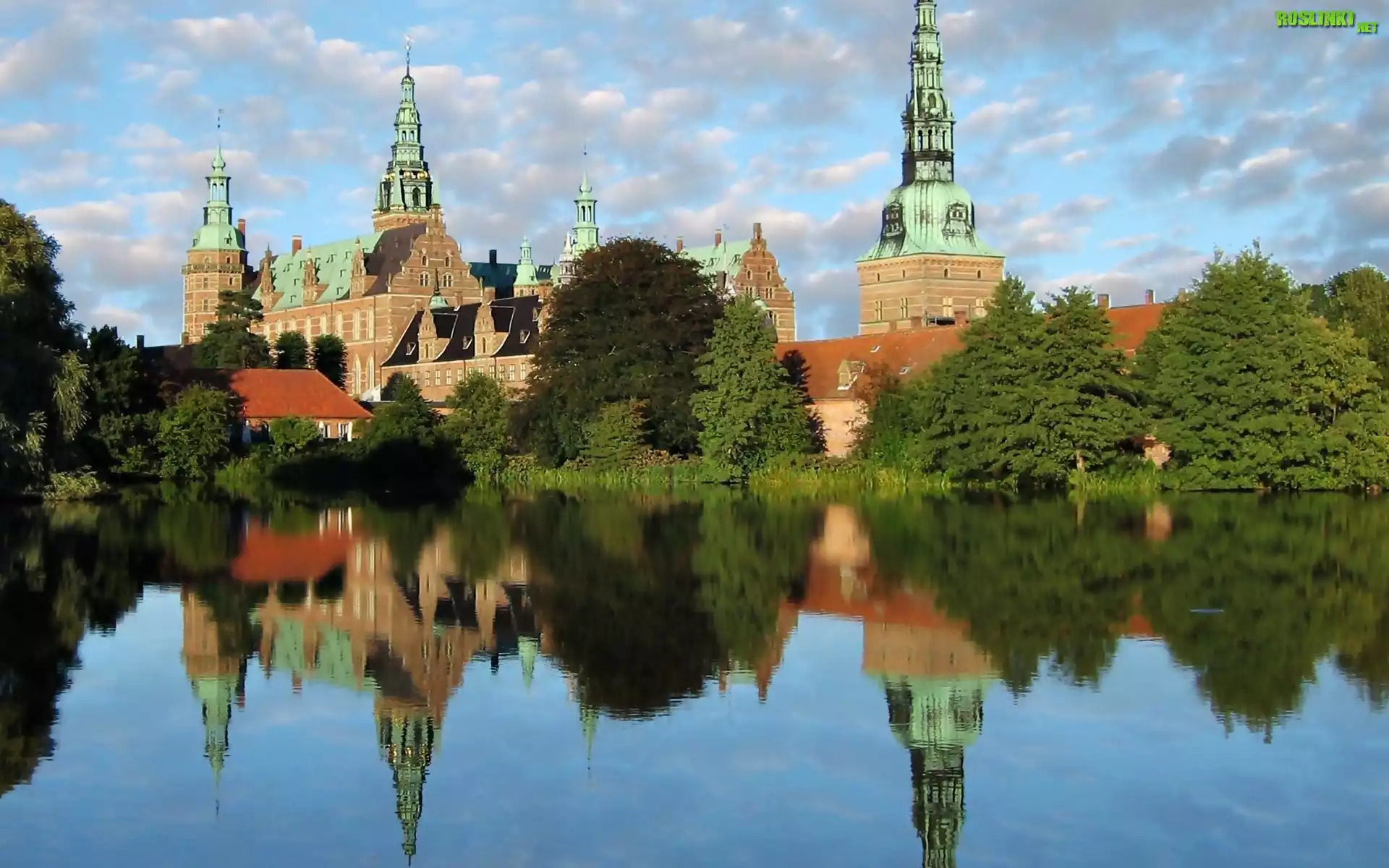 Rośliny: Dania, Zamek w Hillerod, Frederiksborg Castle, Jezioro, Drzewa
