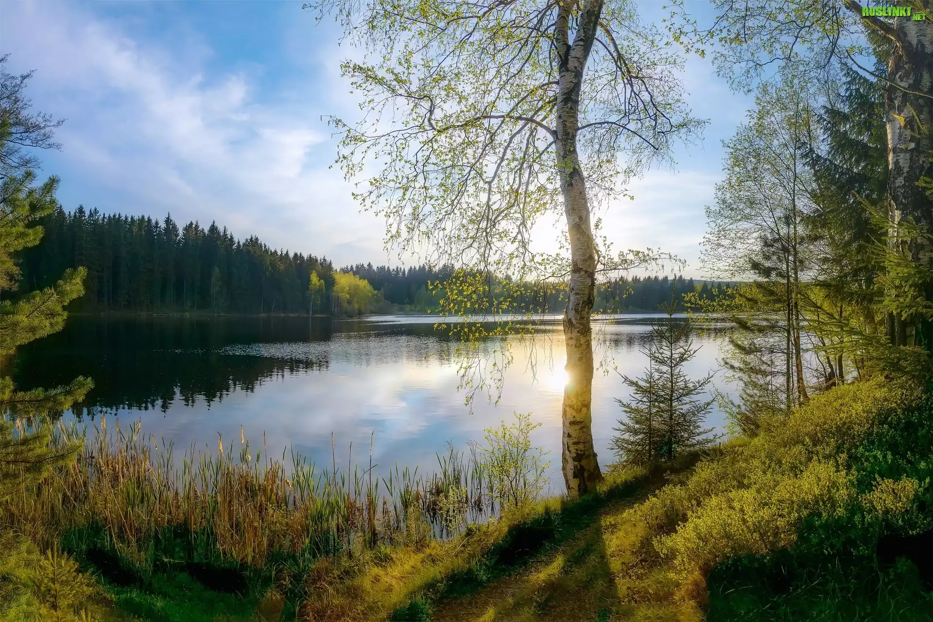 Rośliny: Wiosna, Jezioro, Drzewa, Las, Trzciny, Trawa, Brzoza