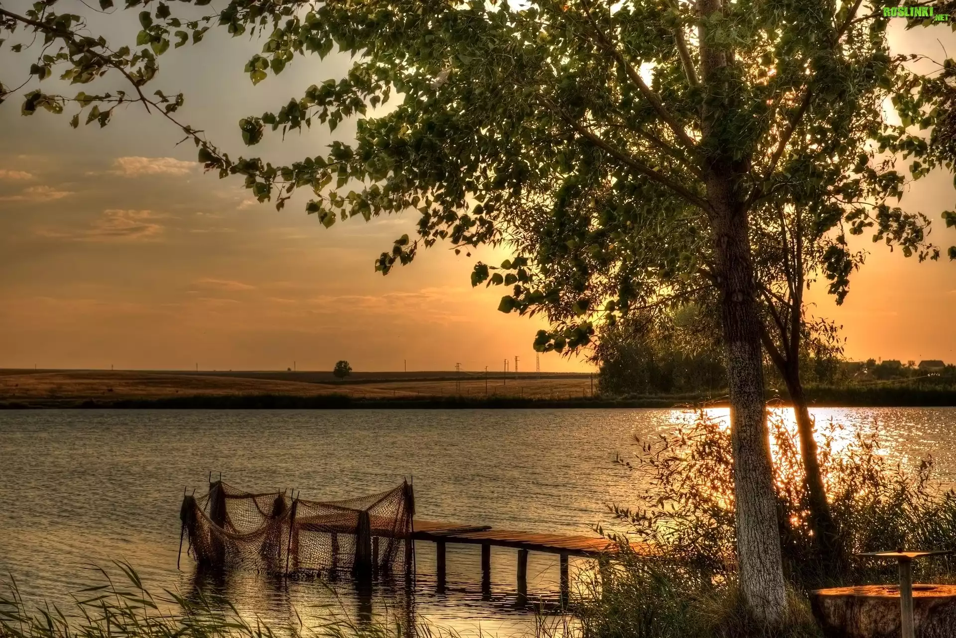 Rośliny: Jezioro, Drzewo, Pomost, Wschód, Słońca