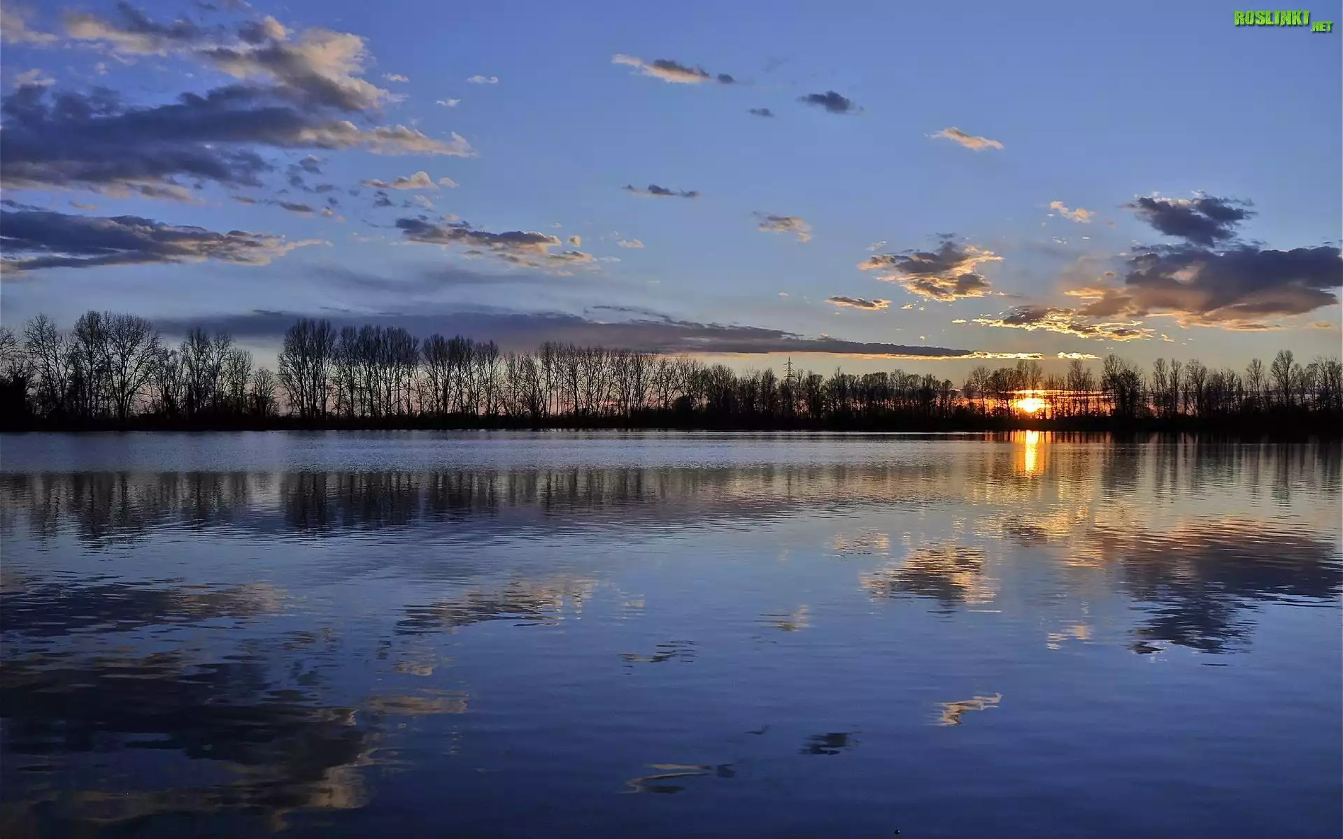 Rośliny: Jezioro, Drzewa, Chmury, Zachód, Słońca