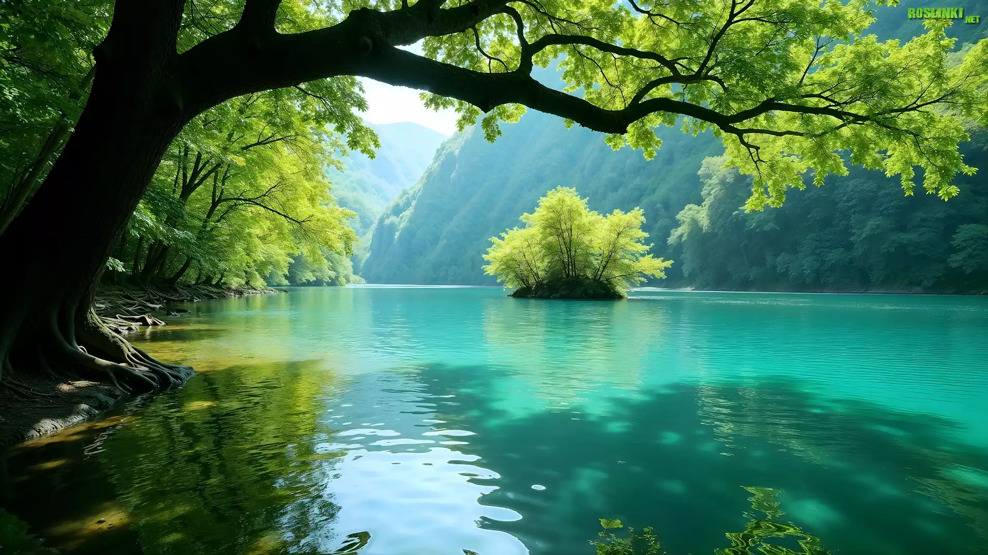 Rośliny: Góry, Jezioro, Zielone, Drzewa, Gałęzie
