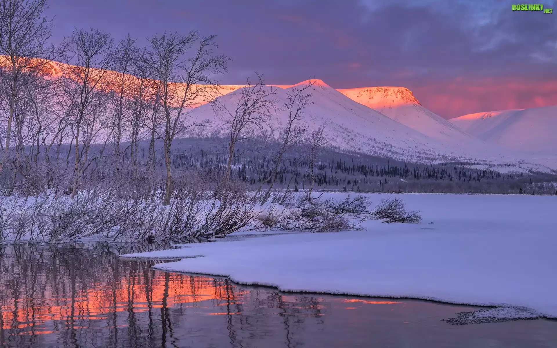 Rośliny: Zima, Góry, Drzewa, Jezioro