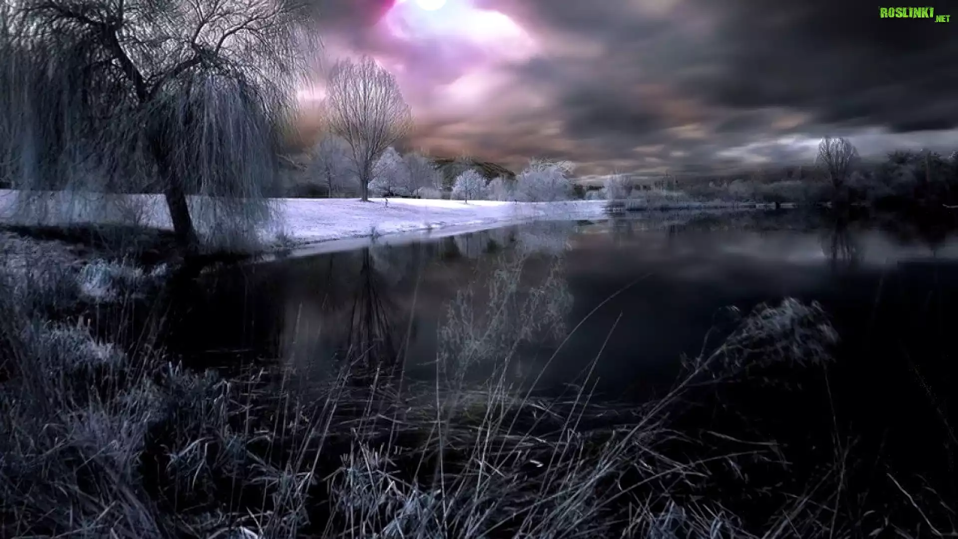 Rośliny: Jezioro, Pochmurne, Niebo, Zima, Drzewa