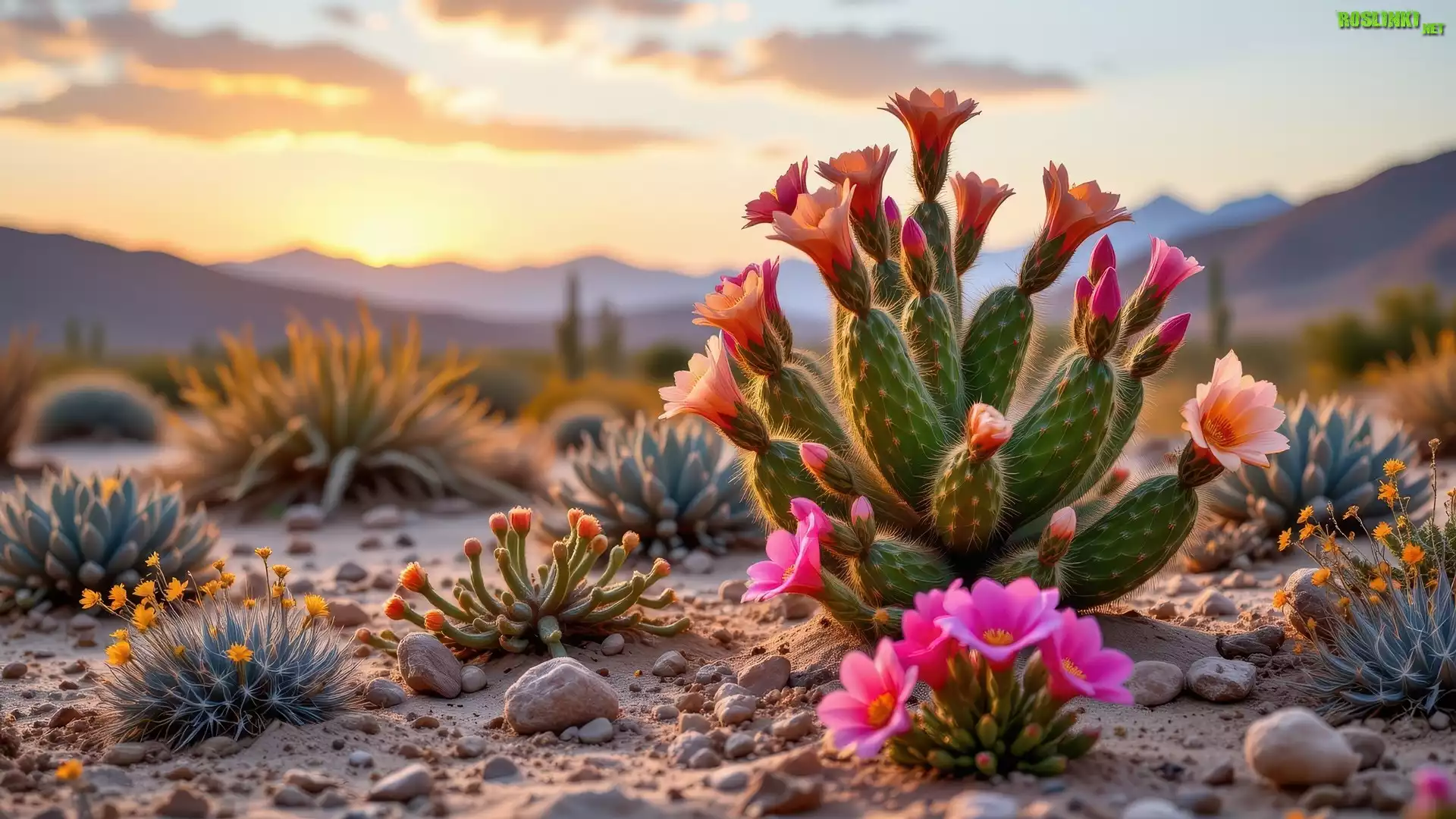 Rośliny: Piasek, Kamienie, Kwitnące, Kaktusy, Kępki, Roślin