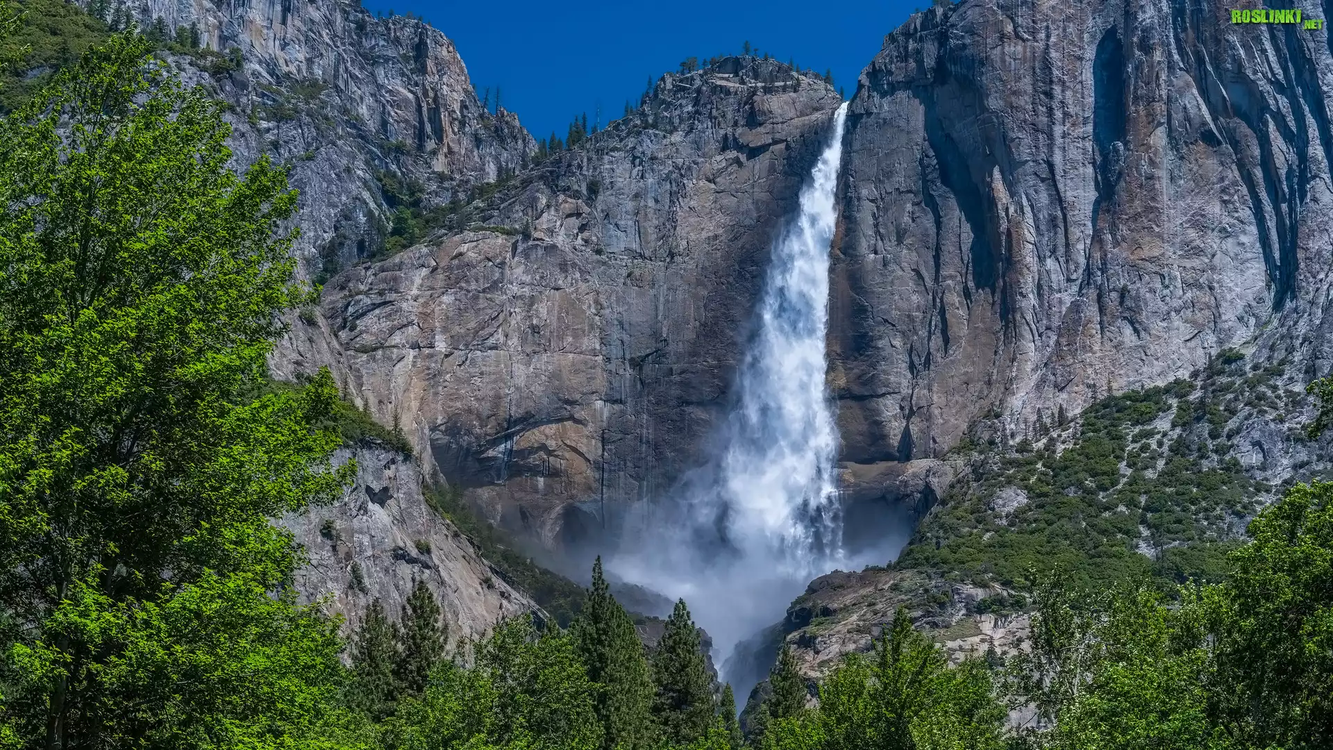 Góry, Drzewa, Wodospad, Upper Yosemite Falls, Park Narodowy Yosemite, Kalifornia, Stany Zjednoczone |