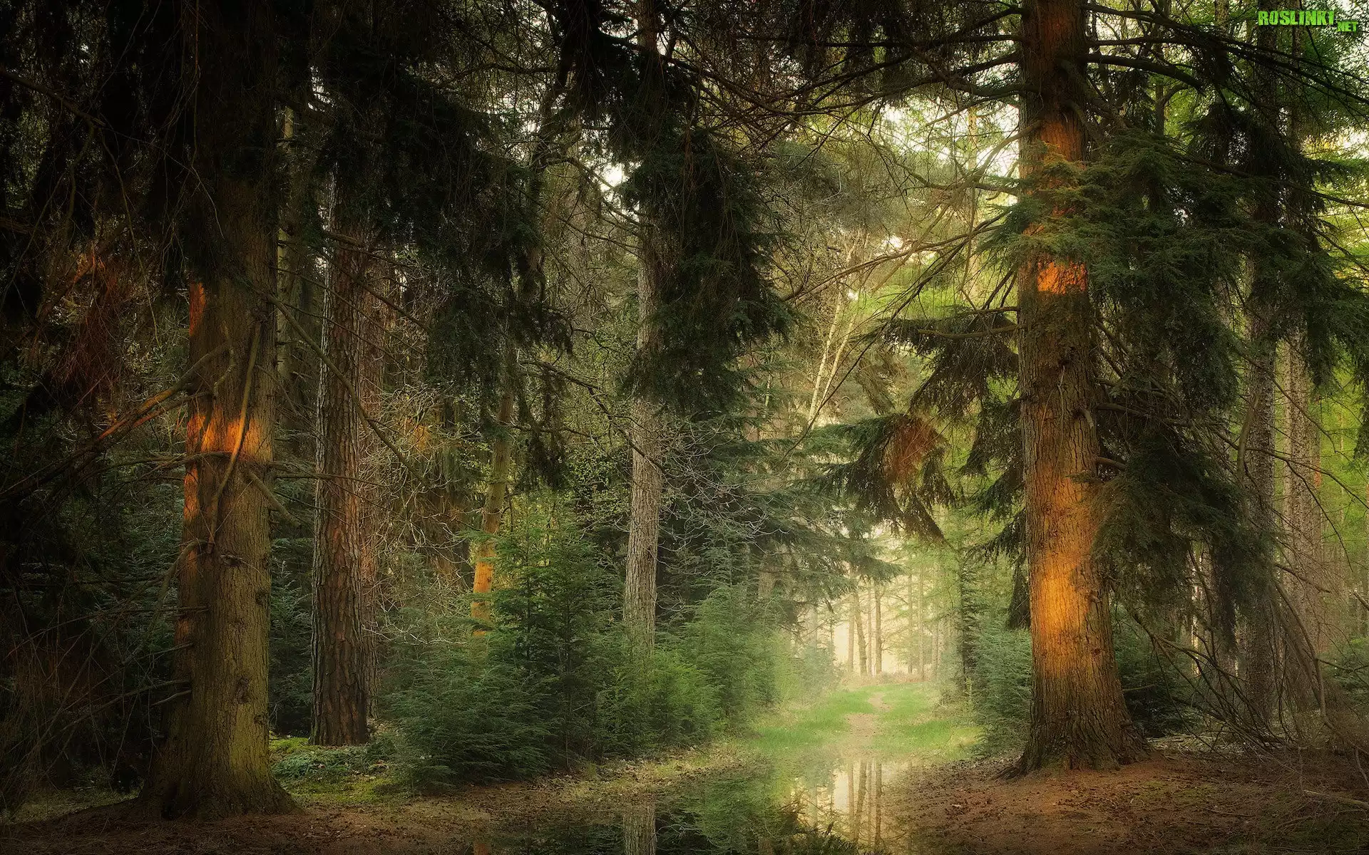Rośliny: Las, Drzewa, Wiosna, Kałuża