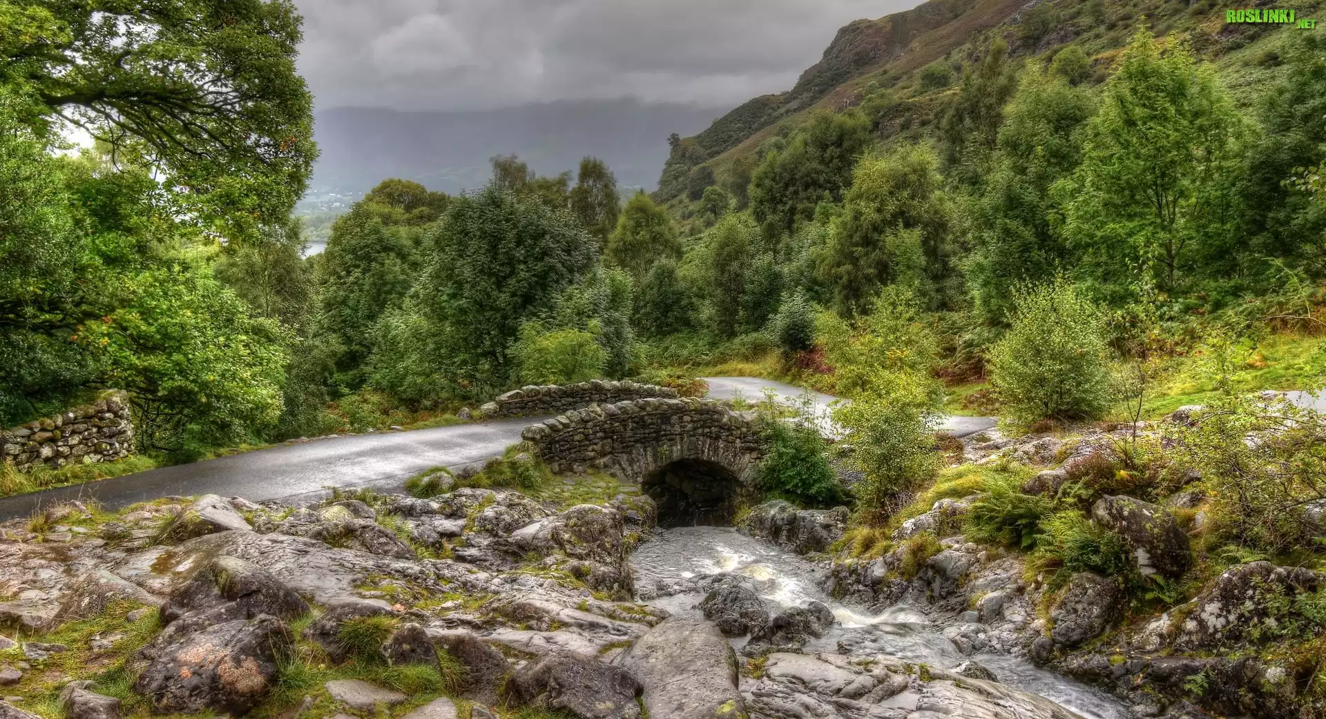 Rośliny: Droga, Kamienie, Kamienny, Mostek, Rzeczka, Strumyk, Zieleń, Drzewa