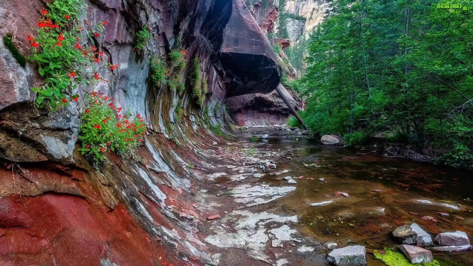 Rośliny: Drzewa, Rzeka, Skały, Kamienie
