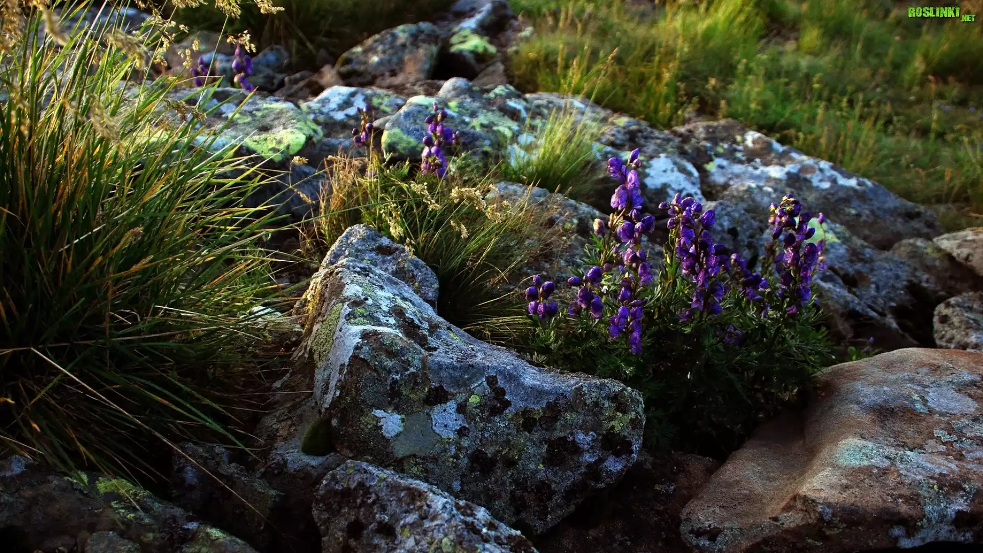 Rośliny: Kamienie, Trawa, Fioletowe, Kwiaty