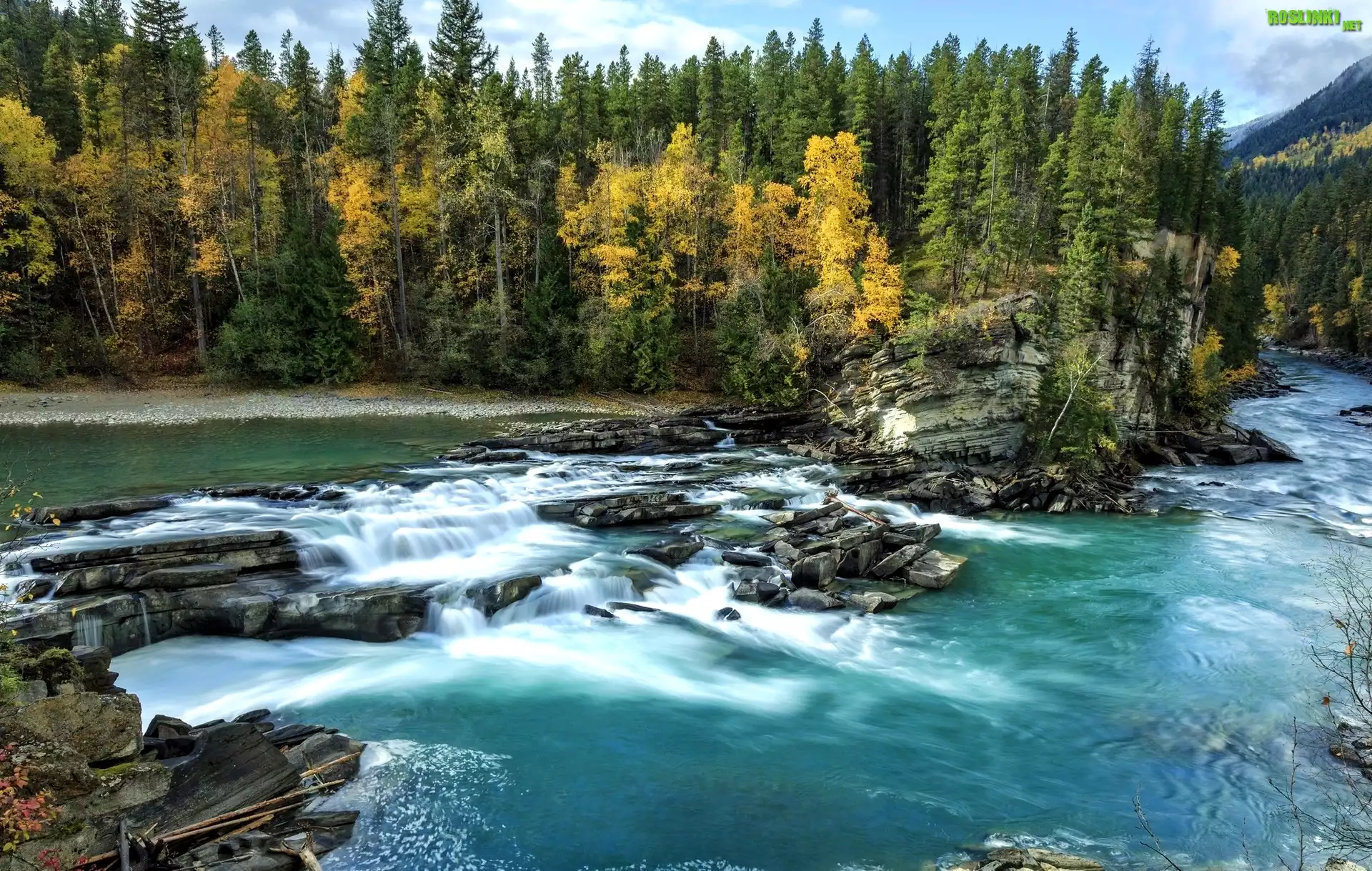 Rośliny: Rzeka Kicking Horse, Drzewa, Las, Skały, Kolumbia Brytyjska, Kanada