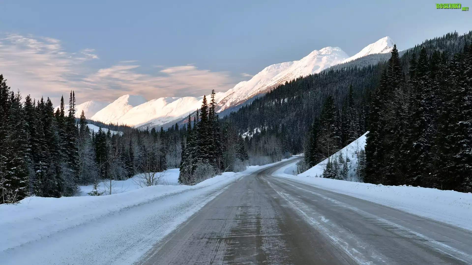 Kanada, Kolumbia Brytyjska, Przełęcz Pine Pass, Droga Highway 97, Góra Murray Range, Zima, Chmury, Las, Drzewa |