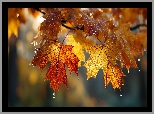 Jesienne, Mokre, Liście, Klon, Krople, Grafika AI