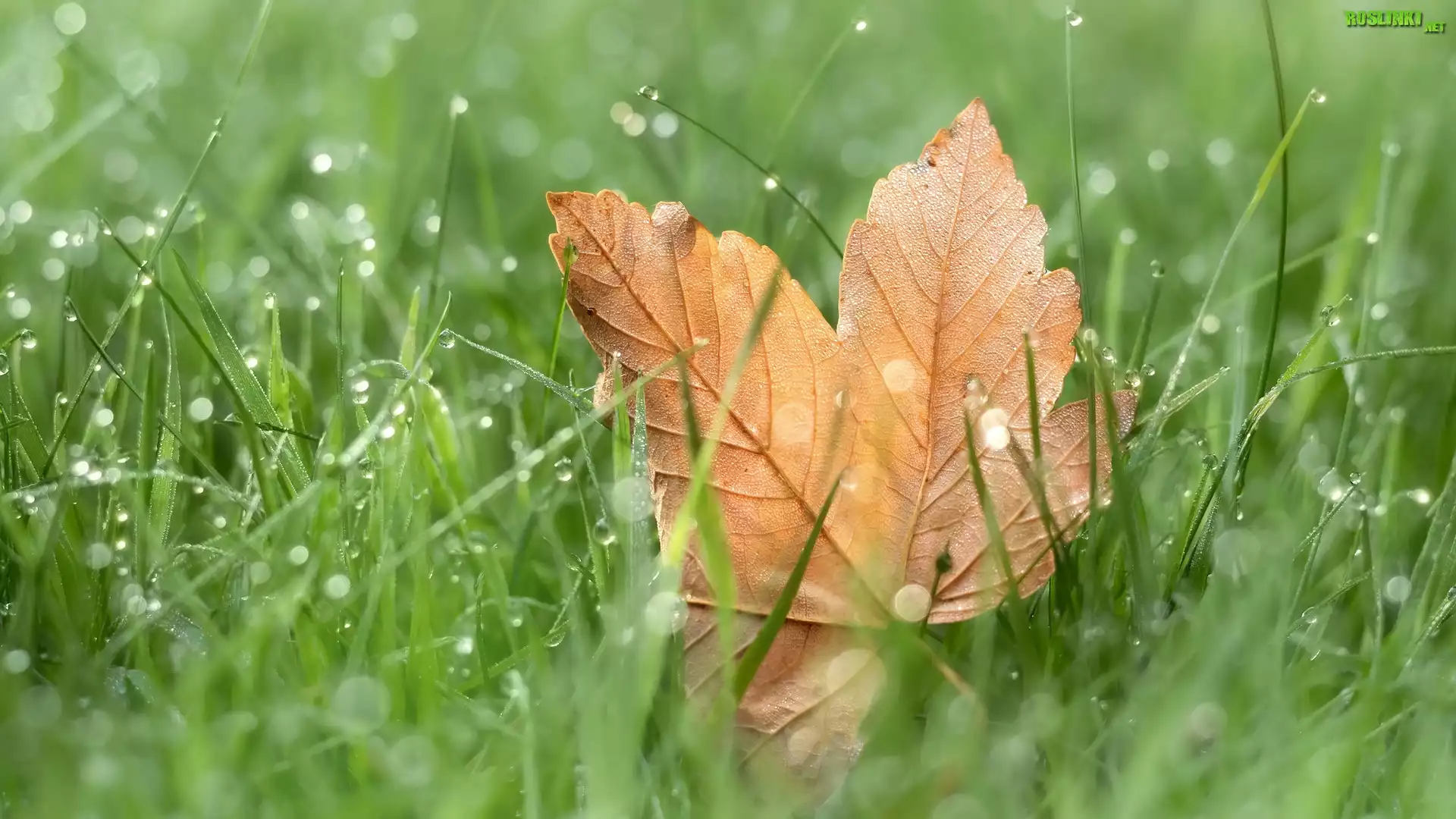 Liść, Klon, Trawa, Rosa, Rozmycie