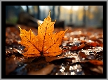 Liść, Klonu, Jesień, Grafika AI