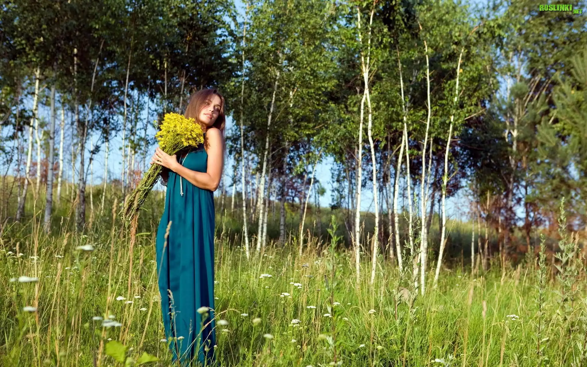 Rośliny: Łąka, Kobieta, Kwiaty