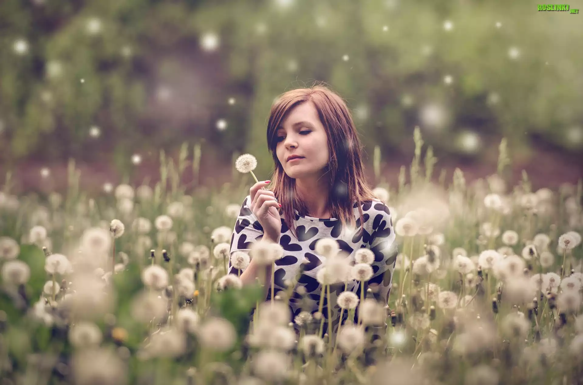 Rośliny: Kobieta, Łąka, Dmuchawce, Drzewa