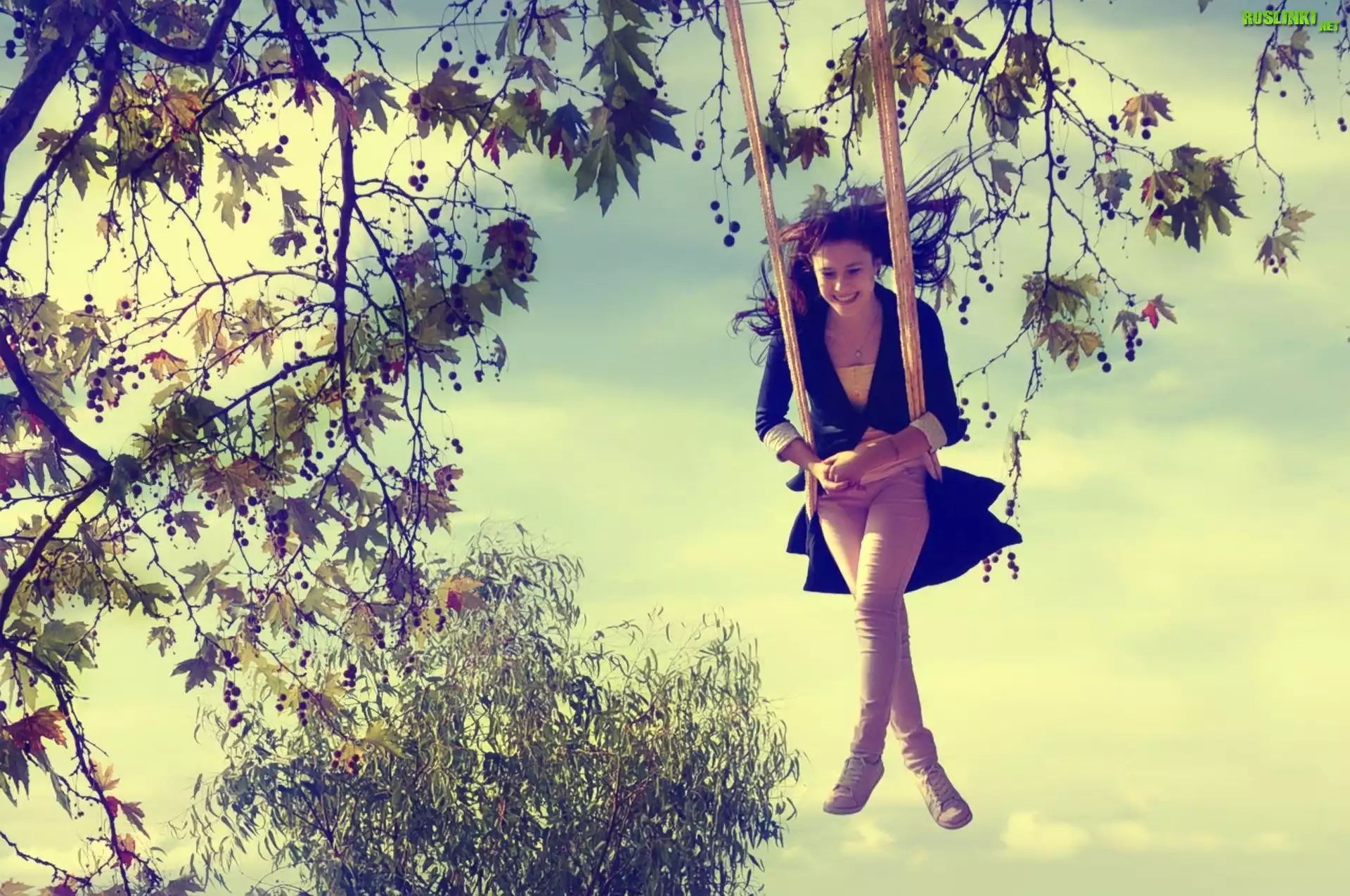 Rośliny: Kobieta, Huśtawka, Drzewo, Gałęzie, Niebo