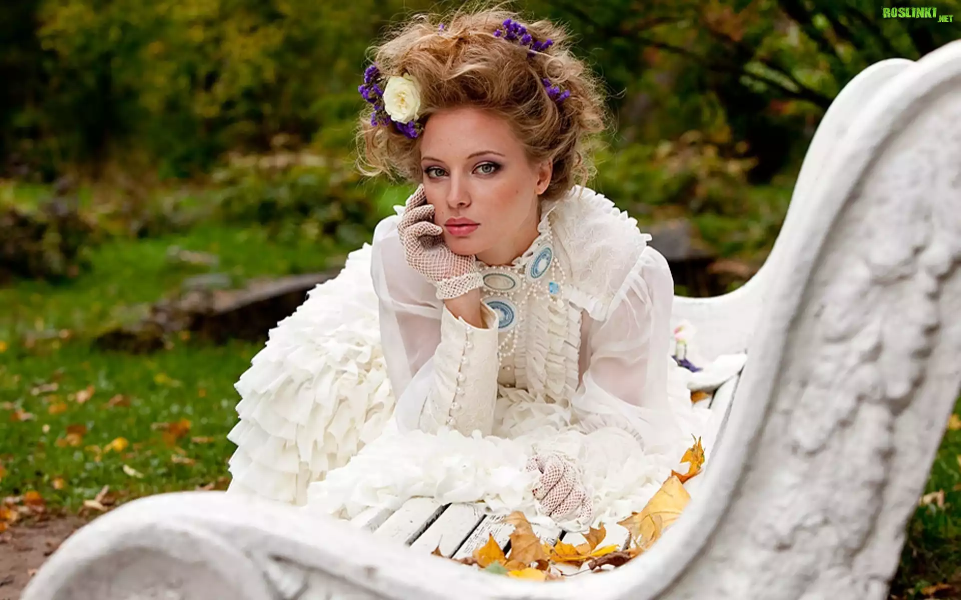 Rośliny: Kobieta, Kwiatek, Ławka, Jesienne, Liście