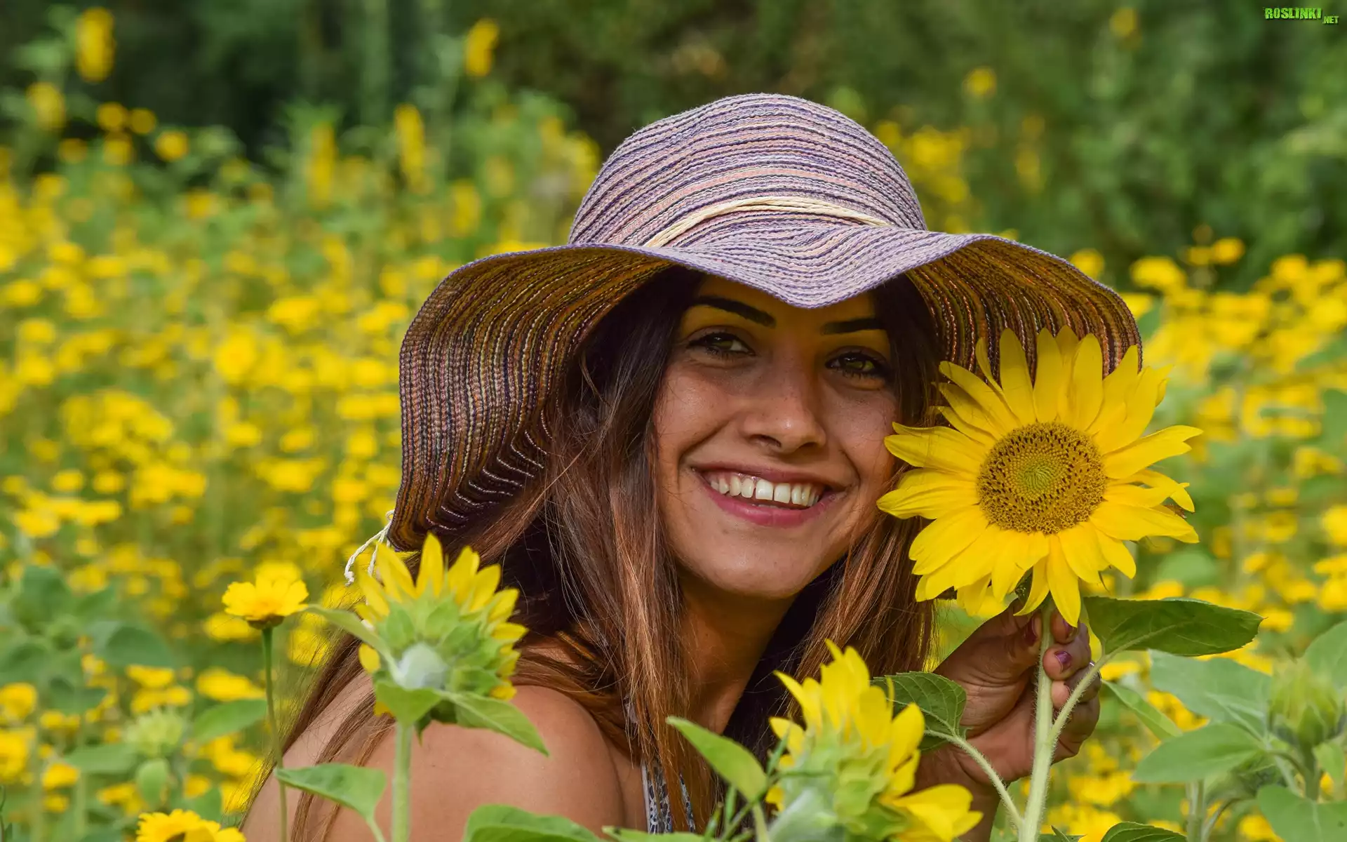 Rośliny: Kobieta, Twarz, Kapelusz, Słoneczniki