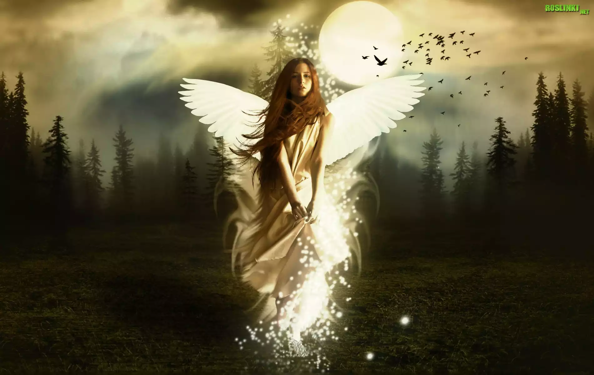 Rośliny: Kobieta, Skrzydła, Księżyc, Las