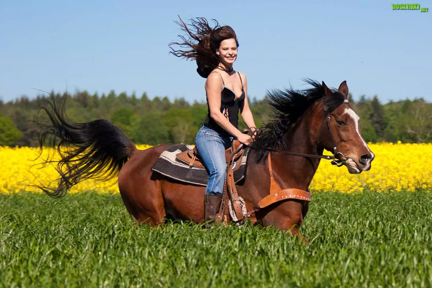 Rośliny: Kobieta, Koń, Łąka, Kwiaty, Las