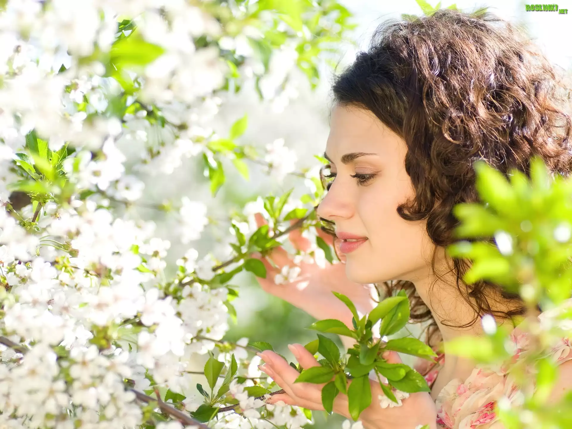 Rośliny: Kobieta, Sad, Kwitnące, Drzewa