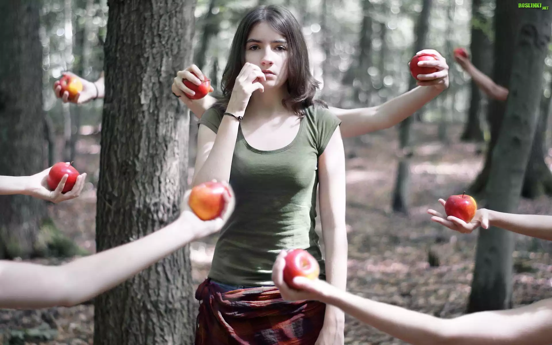 Rośliny: Kobieta, Drzewa, Ręce, Jabłka