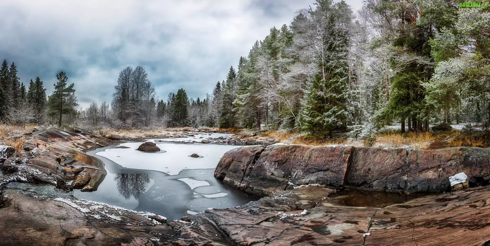 Rośliny: Finlandia, Koitelin, Rzeka Kiiminkijoki, Kamienie, Las, Skały, Drzewa