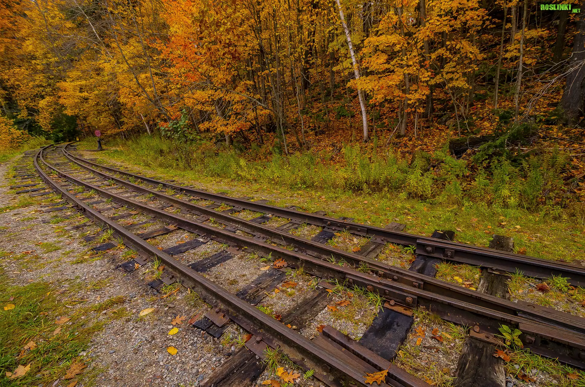 Rośliny: Tory kolejowe, Jesień, Las, Drzewa