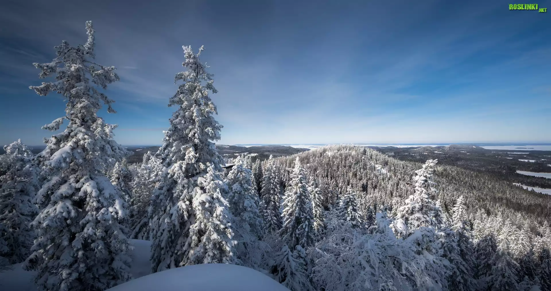 Finlandia, Karelia Północna, Park Narodowy Koli, jezioro Pielinen, Zima, Drzewa, Świerki, Wzgórza |