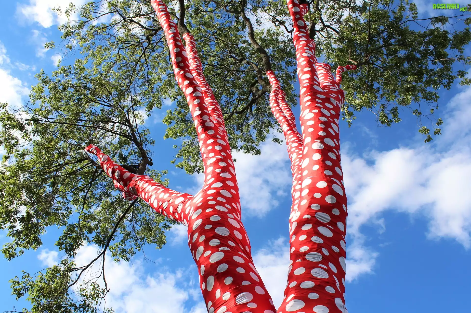 Drzewa, Kolorowe, Czerwone, Pnie, Materiał, Kółka, Niebo