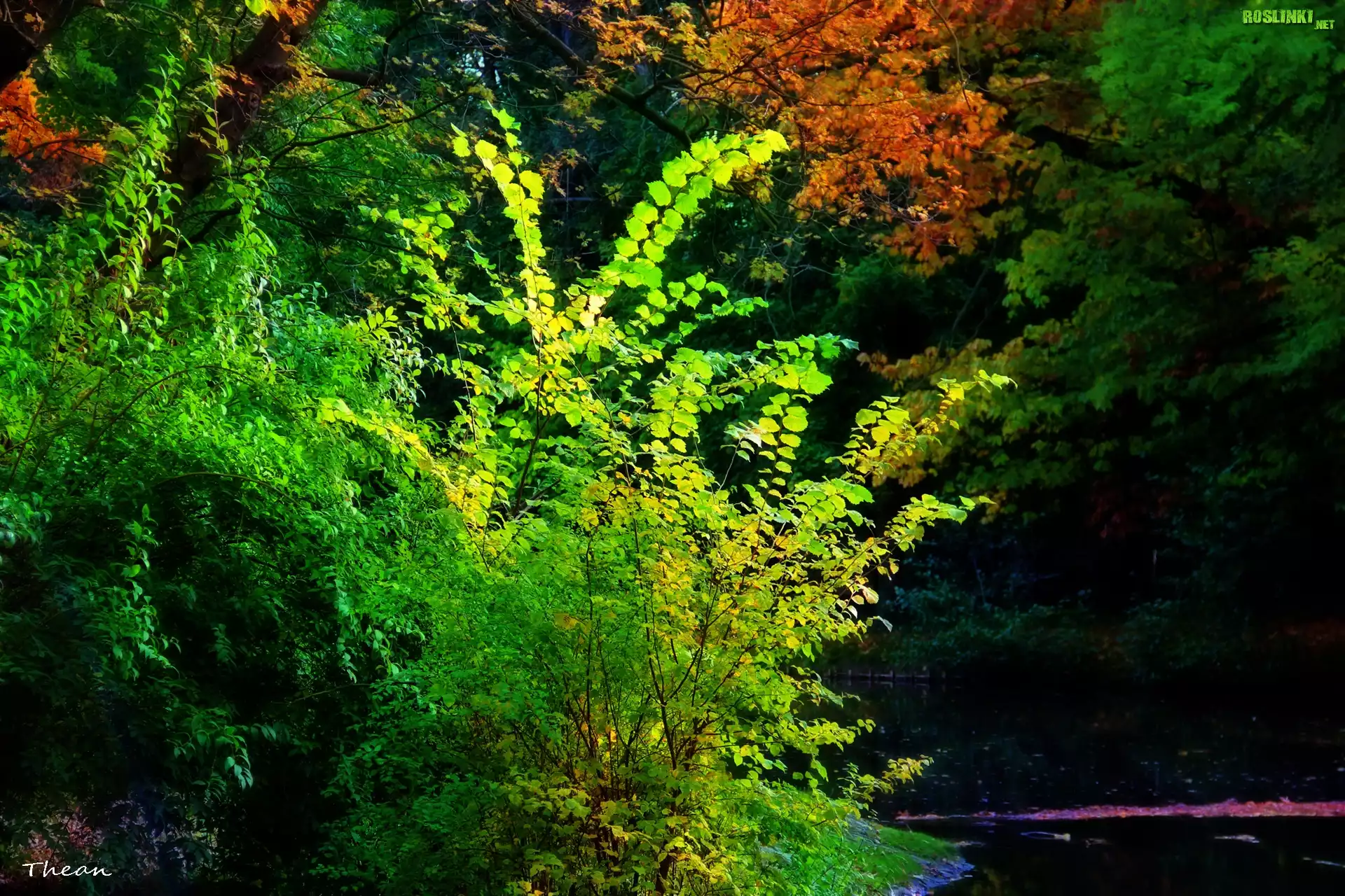 Rośliny: Kolorowe, Liście, Drzewa, Jezioro, Lato
