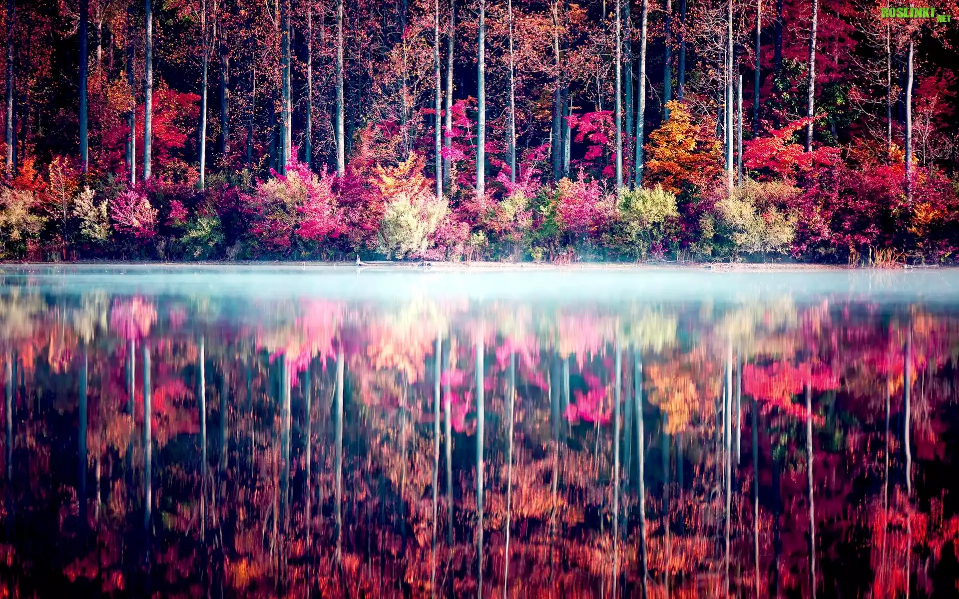 Rośliny: Kolorowe, Drzewa, Jezioro, Odbicie