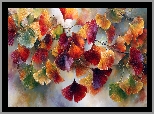 Miłorząb, Kolorowe, Liście, Grafika, AI