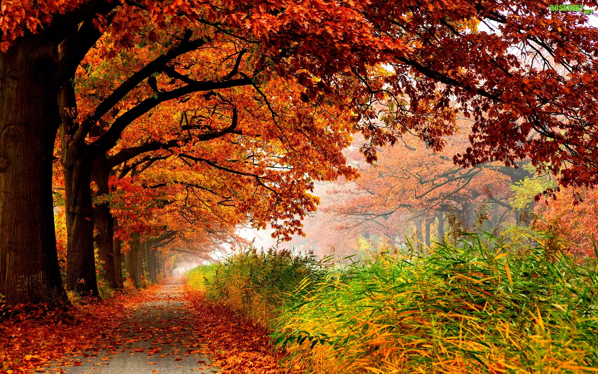 Rośliny: Kolorowe, Drzewa, Liście, Alejka