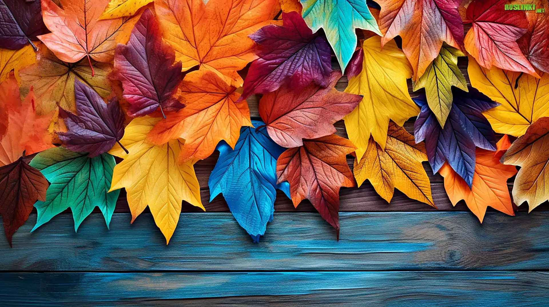Rośliny: Jesień, Kolorowe, Liście, Deski, Grafika