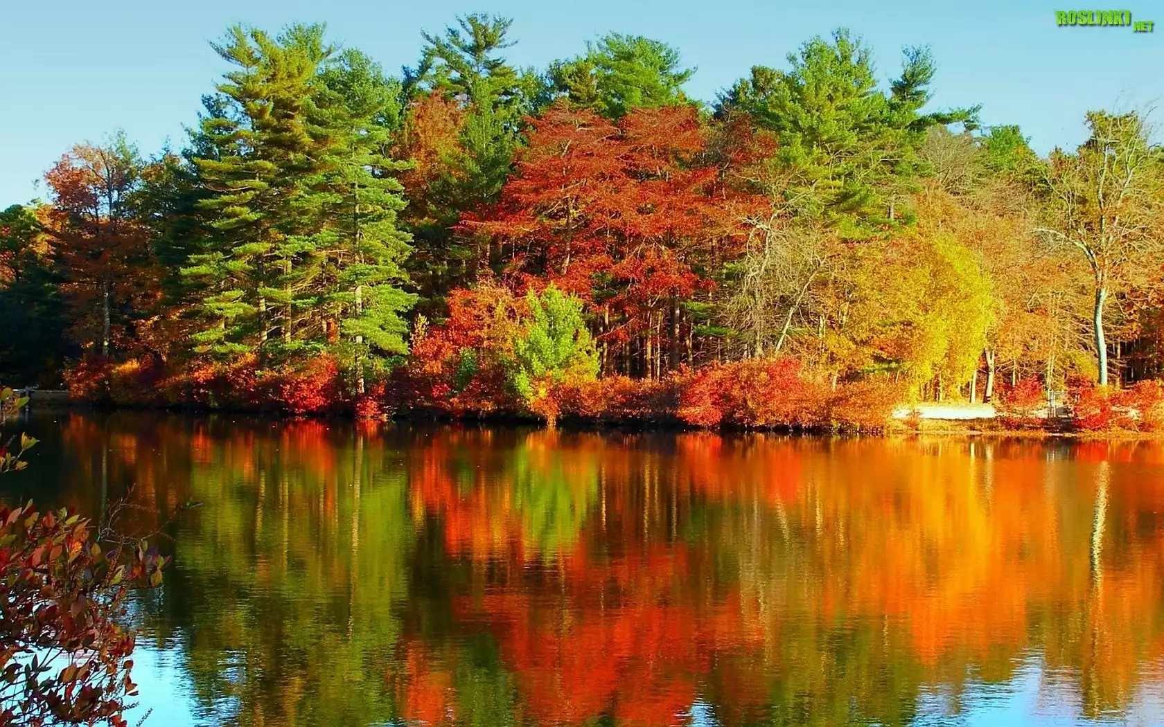 Rośliny: Kolorowe, Barwy, Jesieni, Drzewa, Rzeka, Odbicie