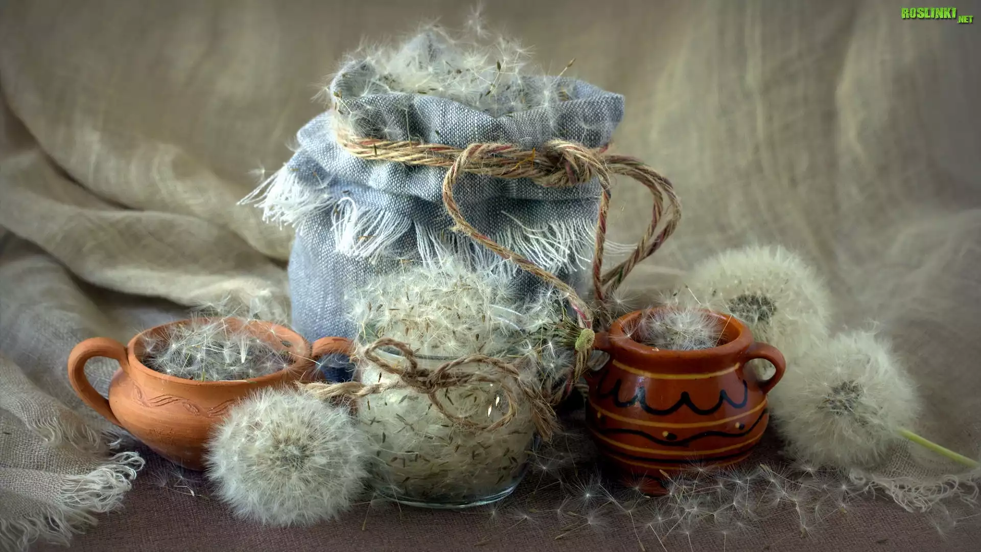 Rośliny: Kompozycja, Gliniane, Naczynia, Słoik, Niełupki, Dmuchawce