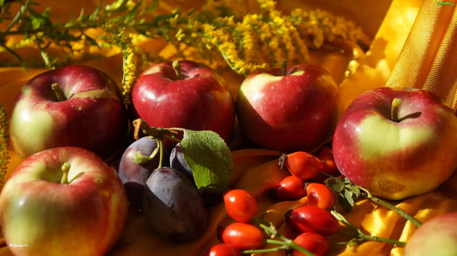 Rośliny: Kompozycja, Owoce, Jabłka, Dzika Róża, Śliwka