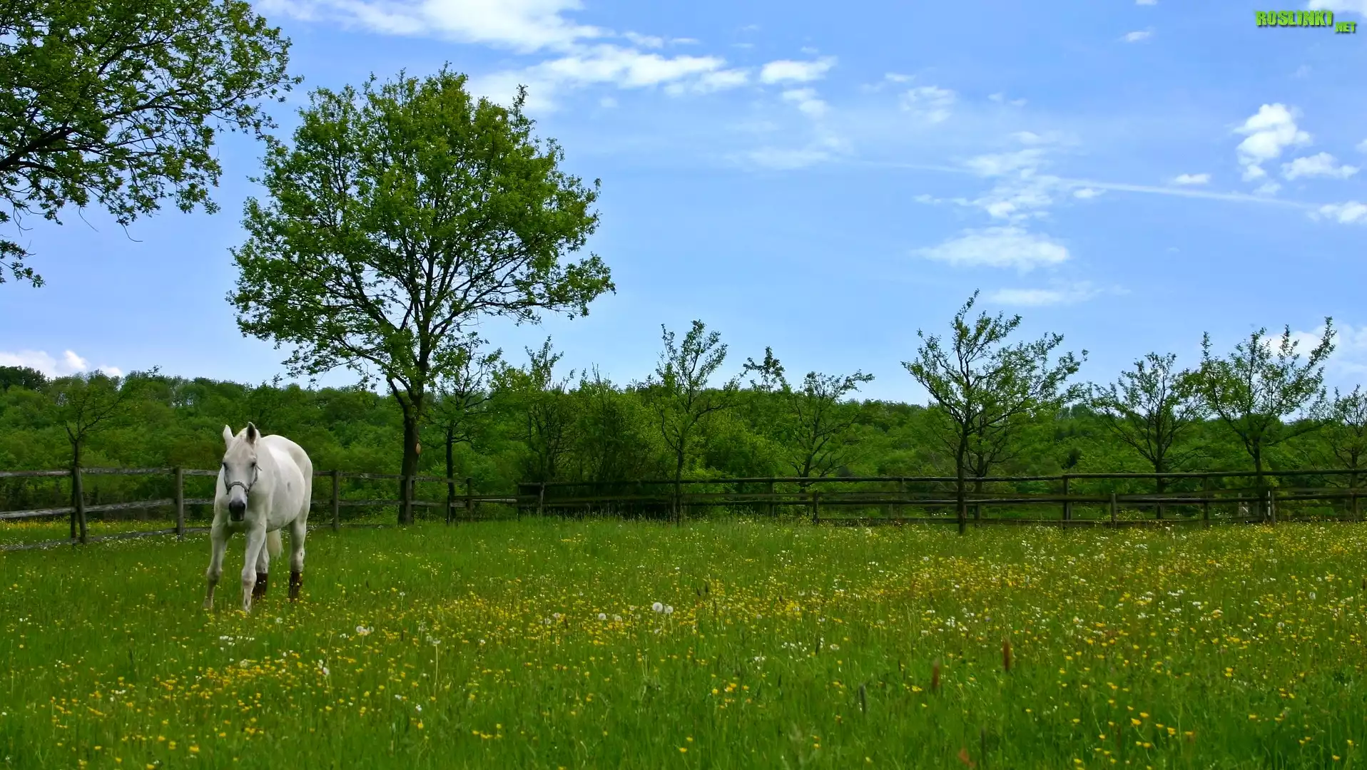 Rośliny: Koń, Wiosna, Drzewa, Łąka, Kwiaty, Trawa