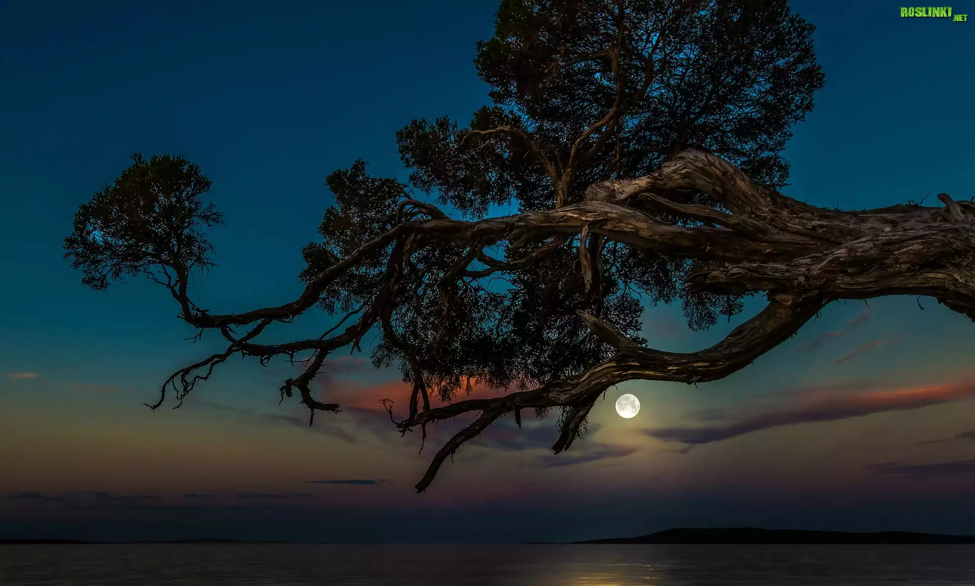Rośliny: Konar, Drzewa, Niebo, Księżyc