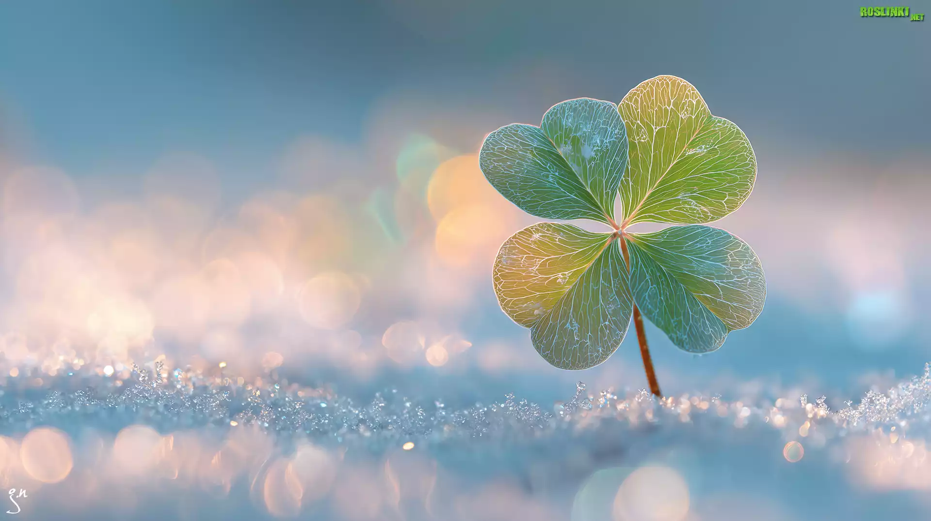 Rośliny: Czterolistna, Koniczyna, Śnieg, Grafika AI