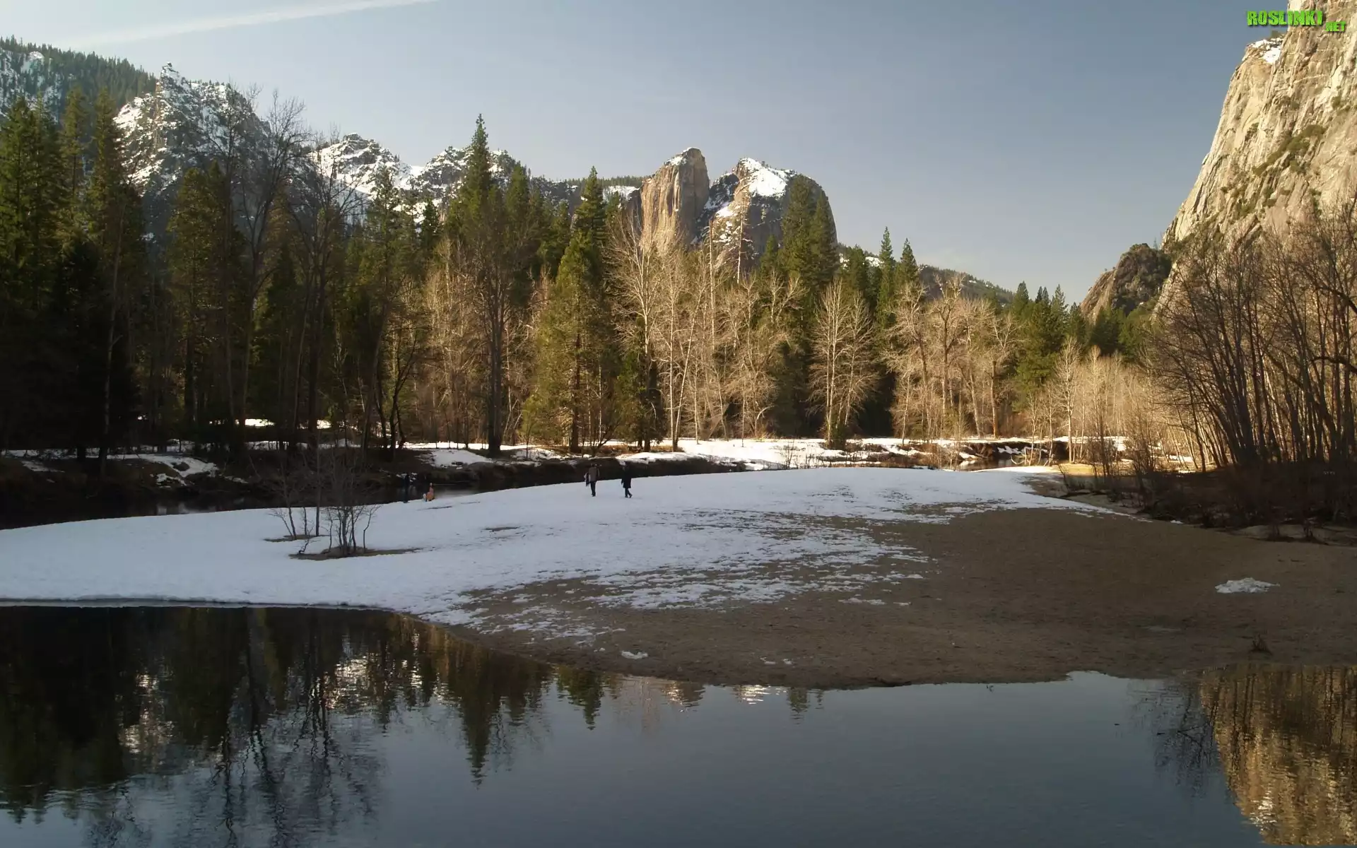 Koniec, Zimy, Góry, Drzewa, Rzeka