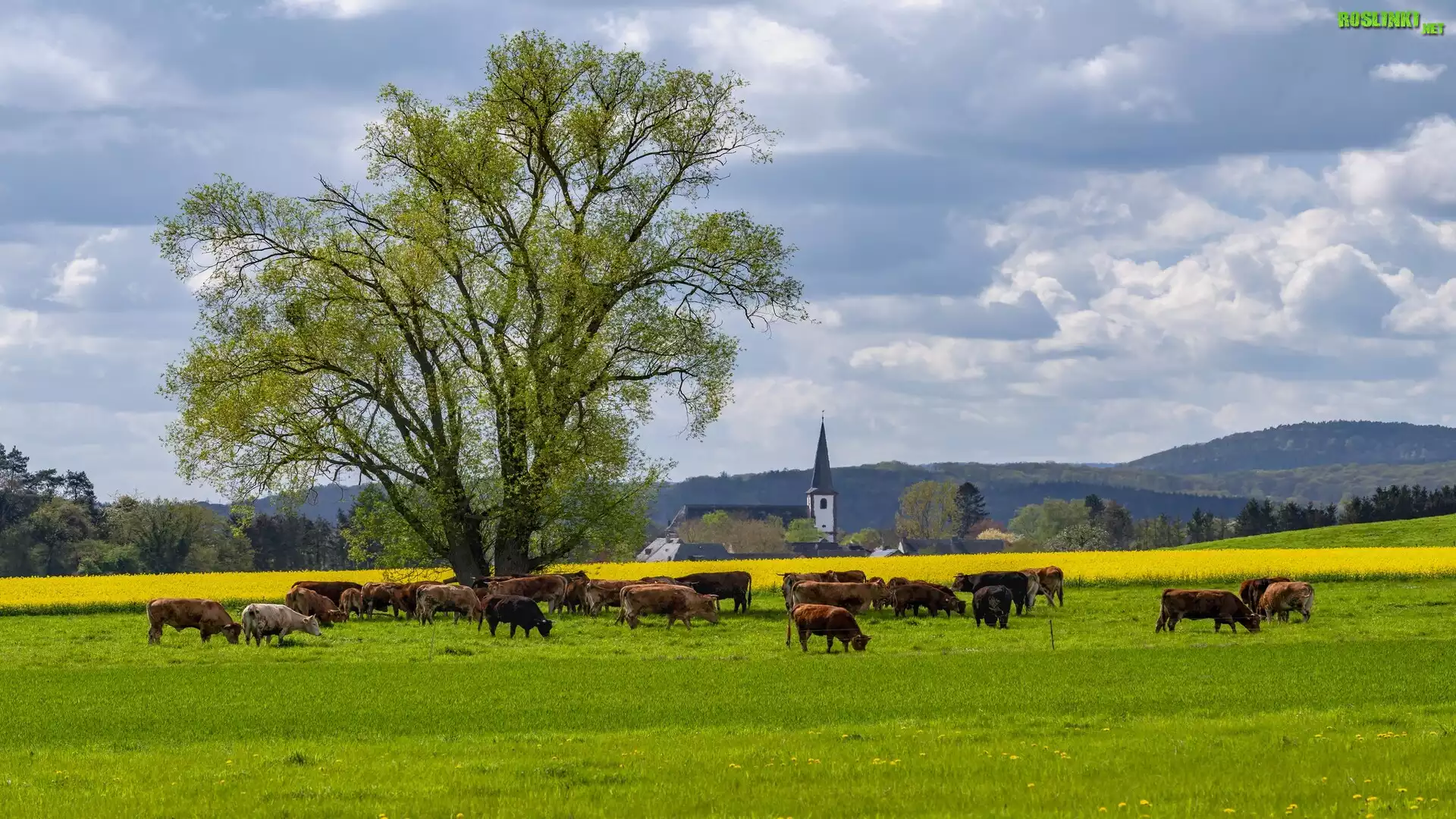 Rośliny: Drzewo, Łąka, Krowy, Kościół, Dolina Wittlicha, Niemcy
