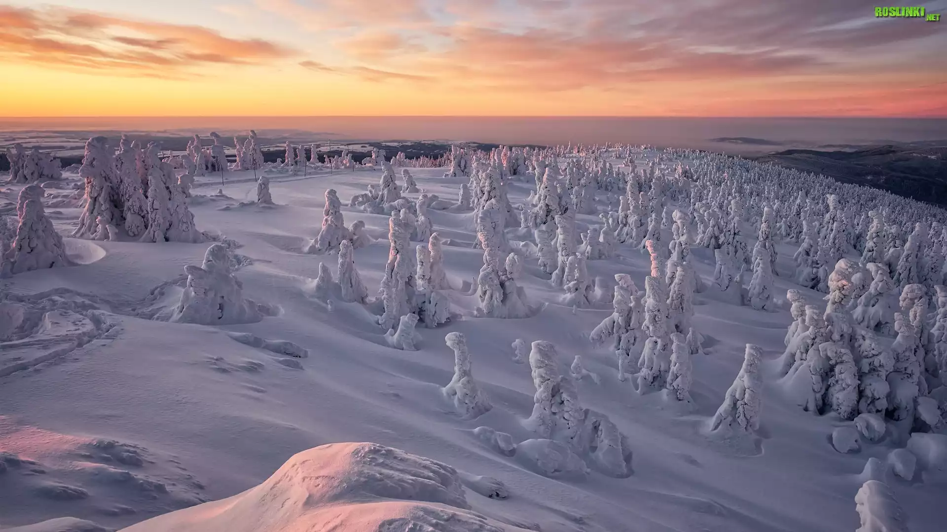 Rośliny: Czechy, Kraj ołomuniecki, Góry, Jesioniki, Zima, Drzewa, Ośnieżone