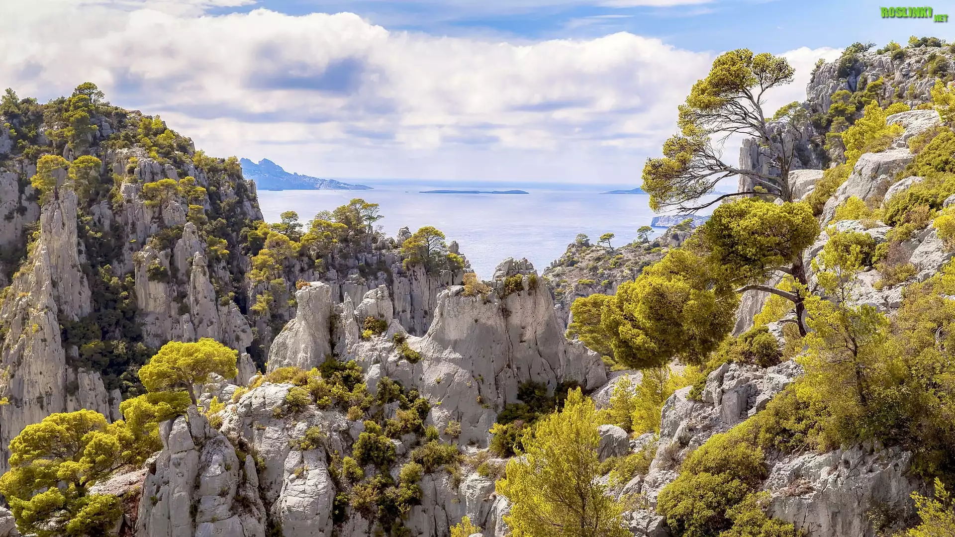 Rośliny: Krajobraz, Góry, Skały, Drzewa, Morze