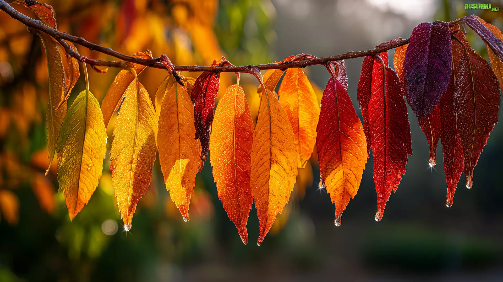 Rośliny: Gałązka, Jesienne, Liście, Krople, Grafika AI